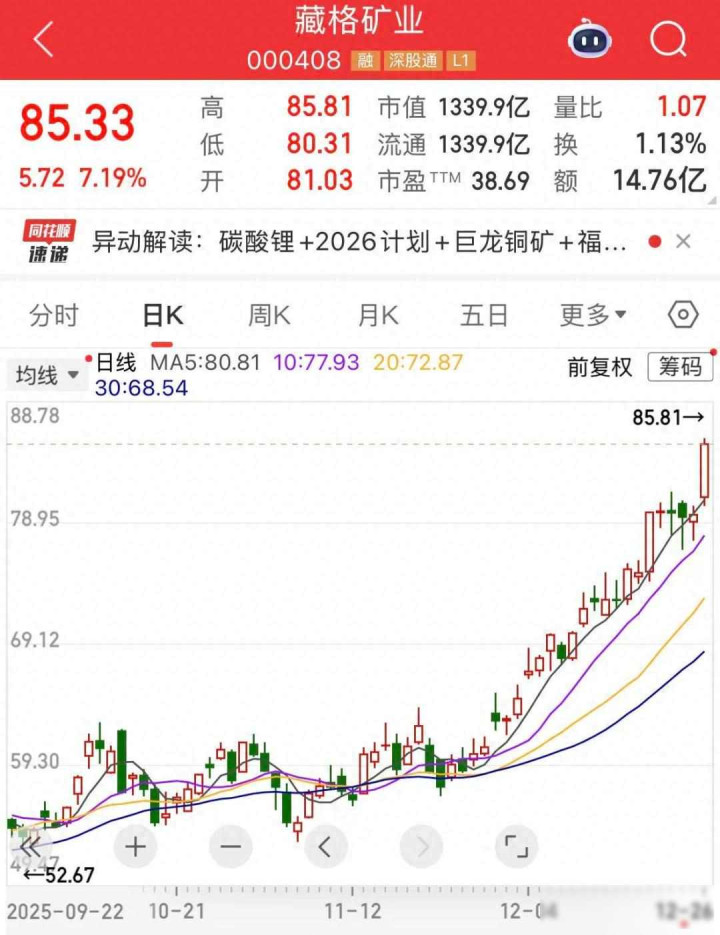 整个行业正处在转变的关键时期,过去靠规模和低价取胜,现在要看资源、技术和生存能力,碳酸锂价格上涨不是偶然发生的,而是市场因素和政策导向一起推动的结果,藏格矿业股价大幅上升,不仅因为拥有矿产资源,还因为它及时跟上了行业变化的步伐,其他公司能否适应,取决于它们如何调整自身策略。